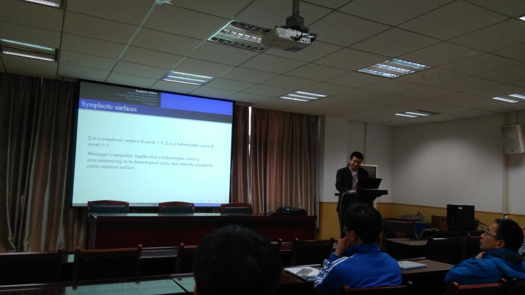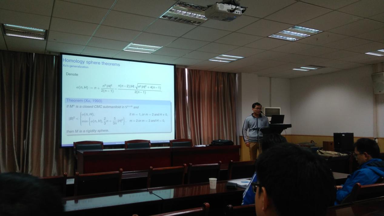 2017年11月15日下午,武汉大学孙俊副教授、孙林林博士来公司讲学。在​永利集团304官网201报告厅他们分别为师生作了题目为“On symplectic critical surfaces”和“Sphere theorems”的学术报告。