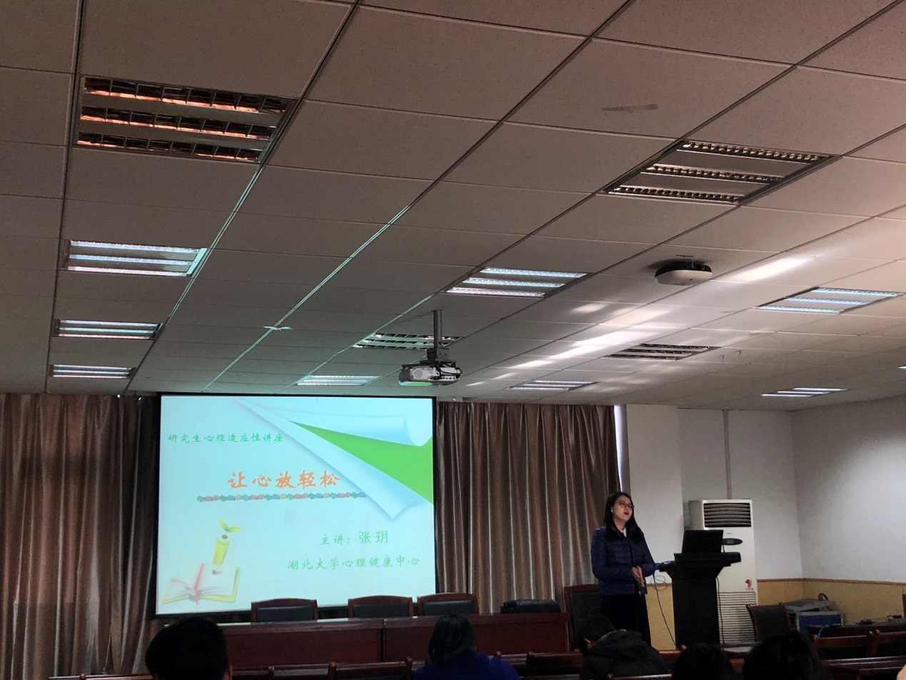 11月23日下午,在数统院201报告厅举行了研究生心理健康讲座,本次讲座由永利集团304心理健康中心的张玥老师主讲,主题为“让心放轻松”。