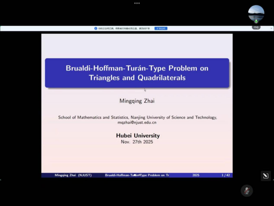 2025年11月27日,南京理工大学翟明清老师应公司刘慧清教授邀请,为公司师生作线上学术报告,报告通过腾讯会议在线举行。会议由刘慧清教授主持,来自运筹学与控制论专业的教师、博士和硕士研究生参与了报告的听取、讨论。