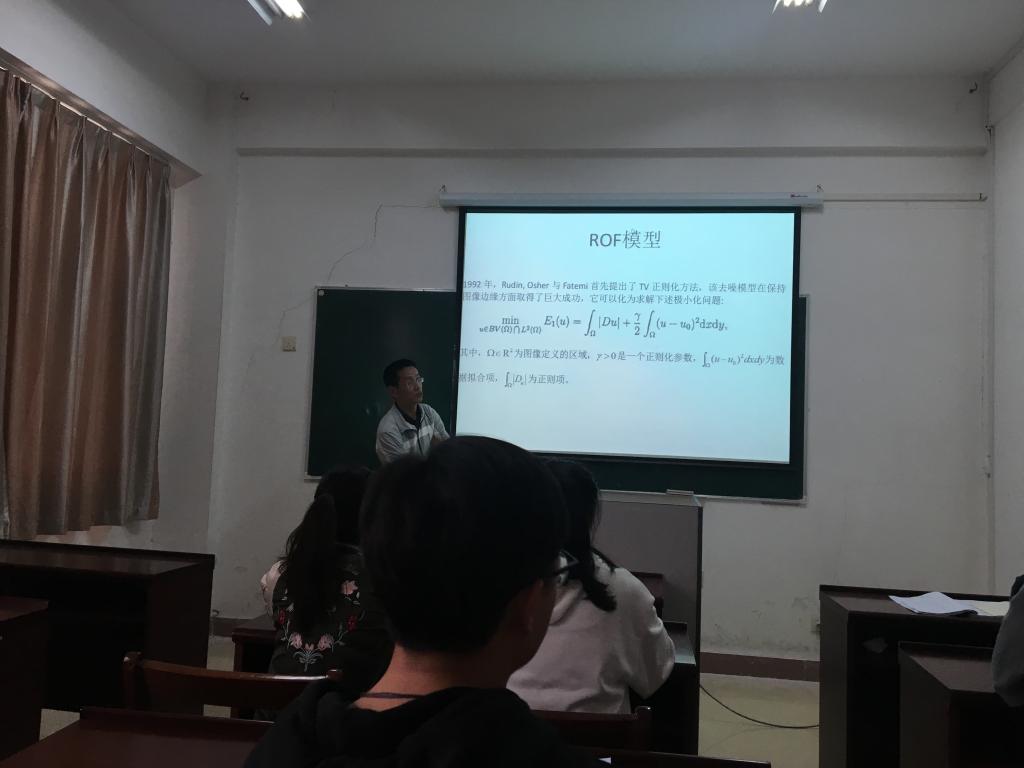 报告中,余纯武老师先后介绍了变分法相关模型以及凸分析中连续空间变分方法和泛函最小化等,最后讲述了变分法相关的模型在图像去噪中的应用。