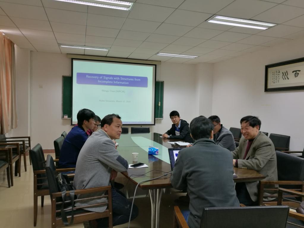 2018年3月12日,北京应用物理与计算数学研究所研究员谌稳固教授应邀来访公司,并为相关专业的教师和研究生做了题为《Recovery of Signals with Structures from Incomplete Information》的学术报告。