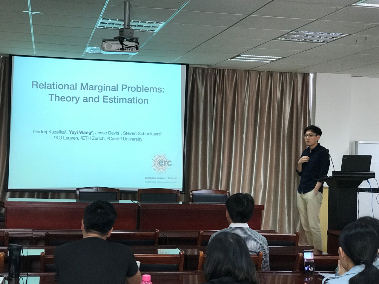 2019年4月18日上午,联邦科学与工业研究组织的资深科学家、悉尼大学附属研究员金慧东教授与苏黎世联邦理工公司博士后研究员王彧弋博士应邀来访公司,在院201报告厅为相关师生分别做了题为《Bayesian spatio-temporal models for frost risk analysis and projection》和《Relational Marginal Problems : Theory and Estimation》的学术报告。