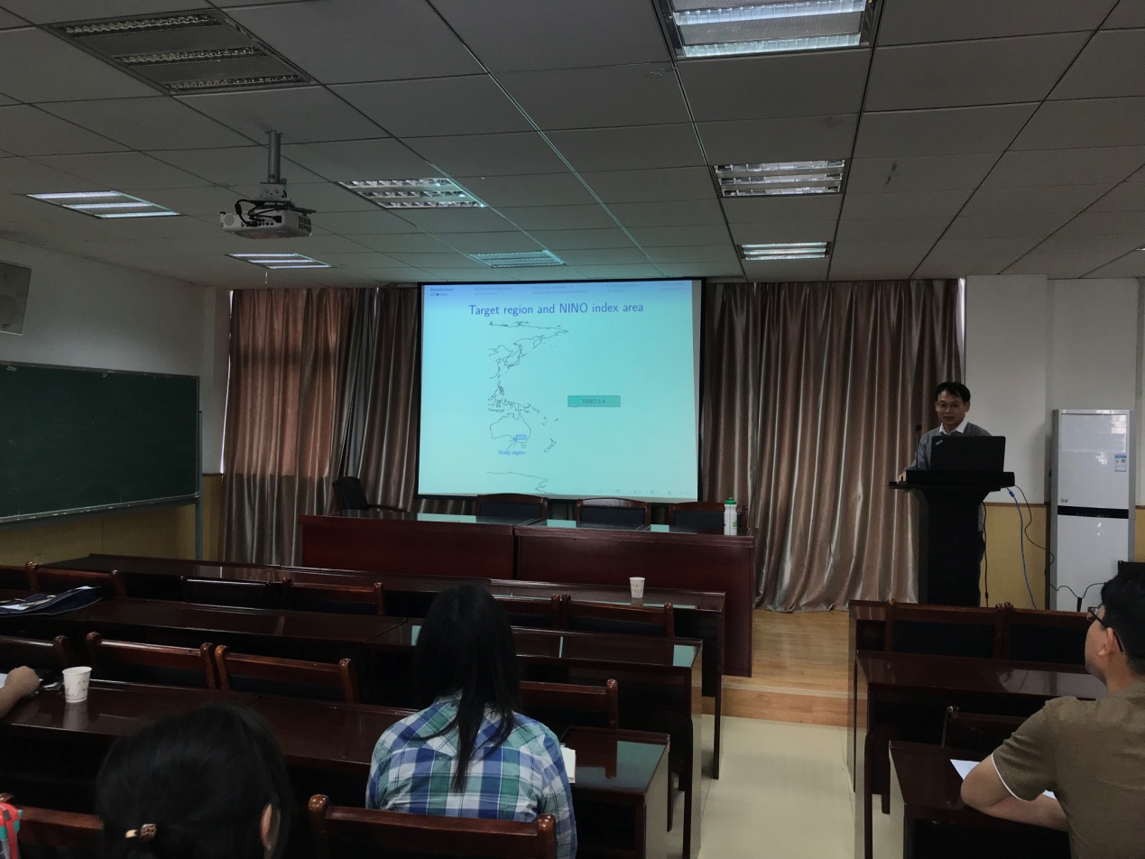 报告中,金慧东教授详细介绍了关于一种空间动力学预测模型,其包括空间变化和时间动态参数的混合。这些模型后来用于预测2048年霜冻频率如何变化,这为冬季作物形成气候适应策略提供了证据。王彧弋博士向同学们介绍了网络关系型数据挖掘的理论和关系,并展示了算法的理论证明。