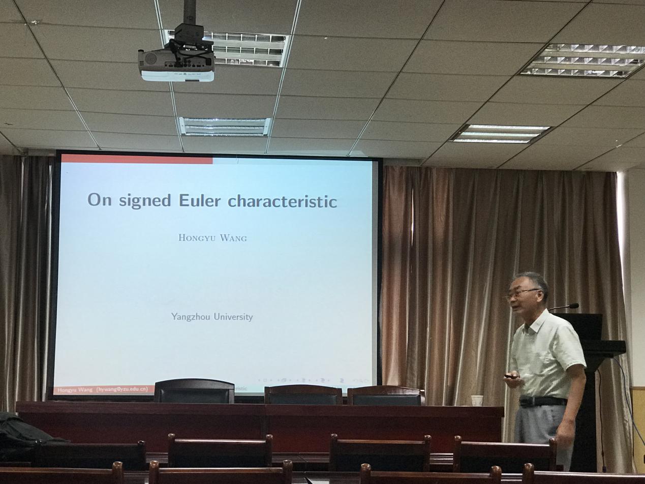 2019年6月9日下午,扬州大学王宏玉教授应邀来访公司,并为相关专业的教师与研究生做了题为“On Singed Euler Characteristic”的学术报告。
