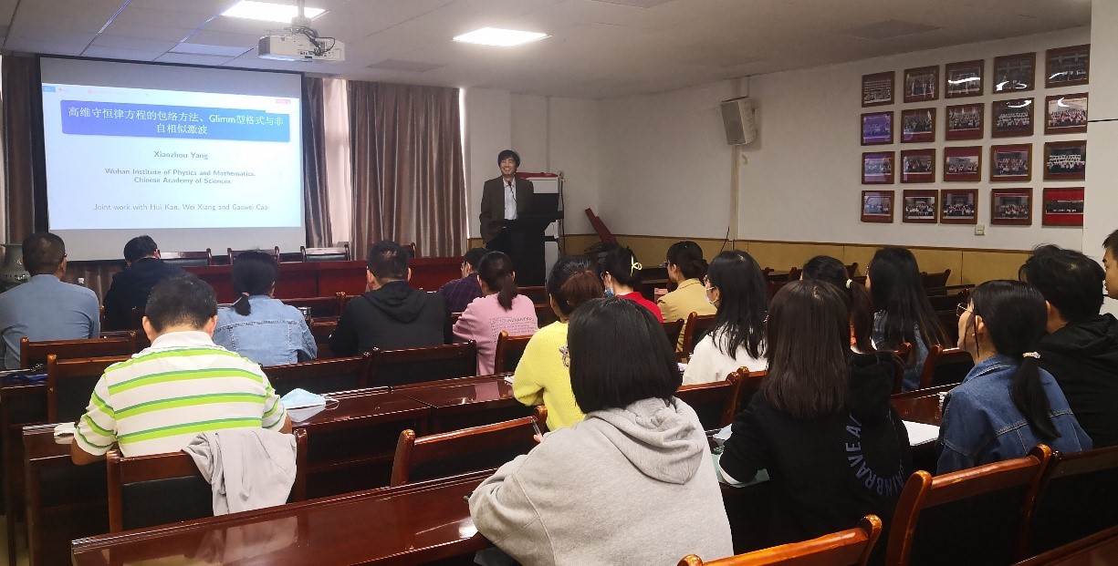 2021年10月8日下午,中科院精密测量研究院(原中科院武汉物理与数学研究所)数学部主任、博士生导师杨小舟研究员应邀在永利集团304官网201会议室为公司偏微分方程方向相关师生作了题为“二维守恒律方程的包络方法、Glimm型格式与非自相似激波”的学术报告。
