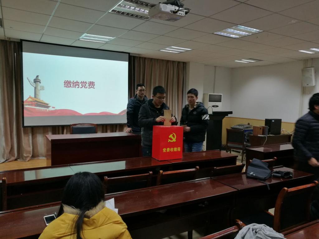 活动开始后,全体研究生党员重温入了党誓词,交纳了12月份的党费,并由研究生二支部书记张谋带领大家重温入党誓词并诵读了党章。随后大家进行了研讨,研究生第二支部书记张谋结合自身的专业为大家做了关于学习十九大心得的交流。