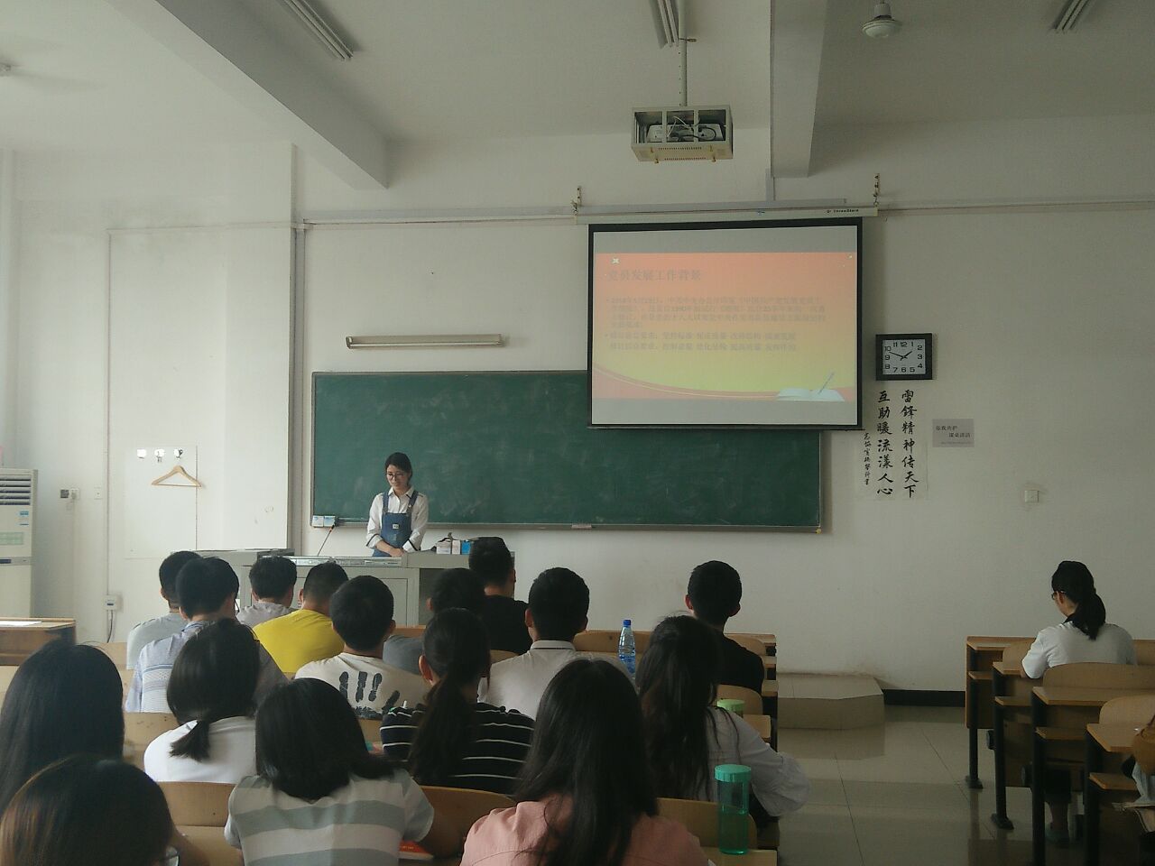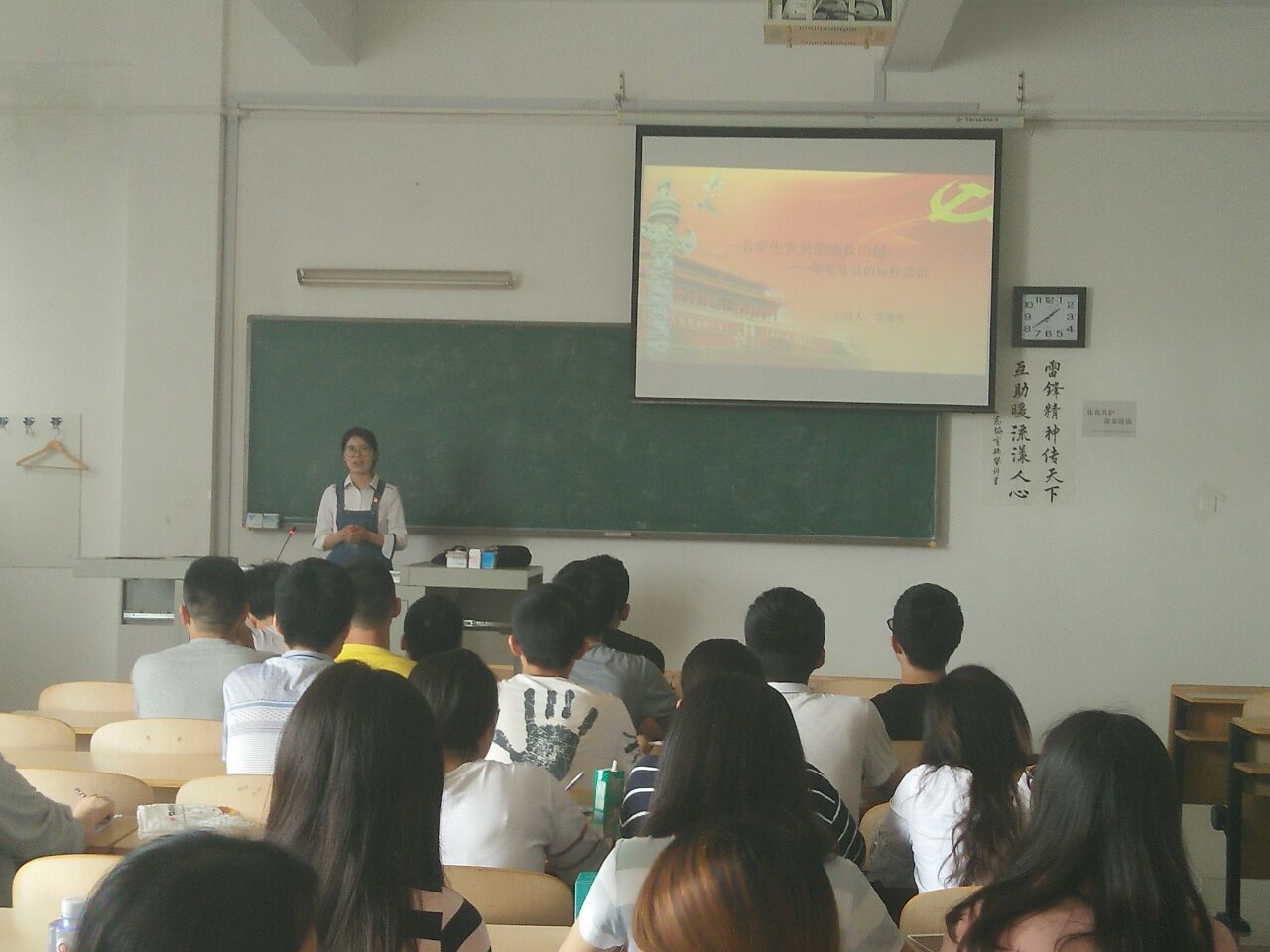 课上,李秀秀就认清老员工肩负的庄严历史使命、了解员工党员发展要求与大致流程、如何做一名合格的员工党员三个部分对一名员工党员的成长历程—员工党员的标杆意识进行了阐述。接着活动策划部的刘鹏飞结合自己在策划活动过程中所遇到的要点和难点向2016级成员们介绍了大公司园活动的分类、活动前期准备、活动注意事项以及活动后期处理。刘鹏飞提及:“只要准备的够充分,无论活动现场发生什么都能从容面对”。团课最后,周峰介绍了PPT的设计与应用,其中包括快捷键的使用、PPT的规范设计流程、文字的处理、图片的处理以及色彩的应用,并当堂演示,向成员们播放他自己制作的两个关于PPT设计的小视频,使得全体成员深陷设计的魅力之中。