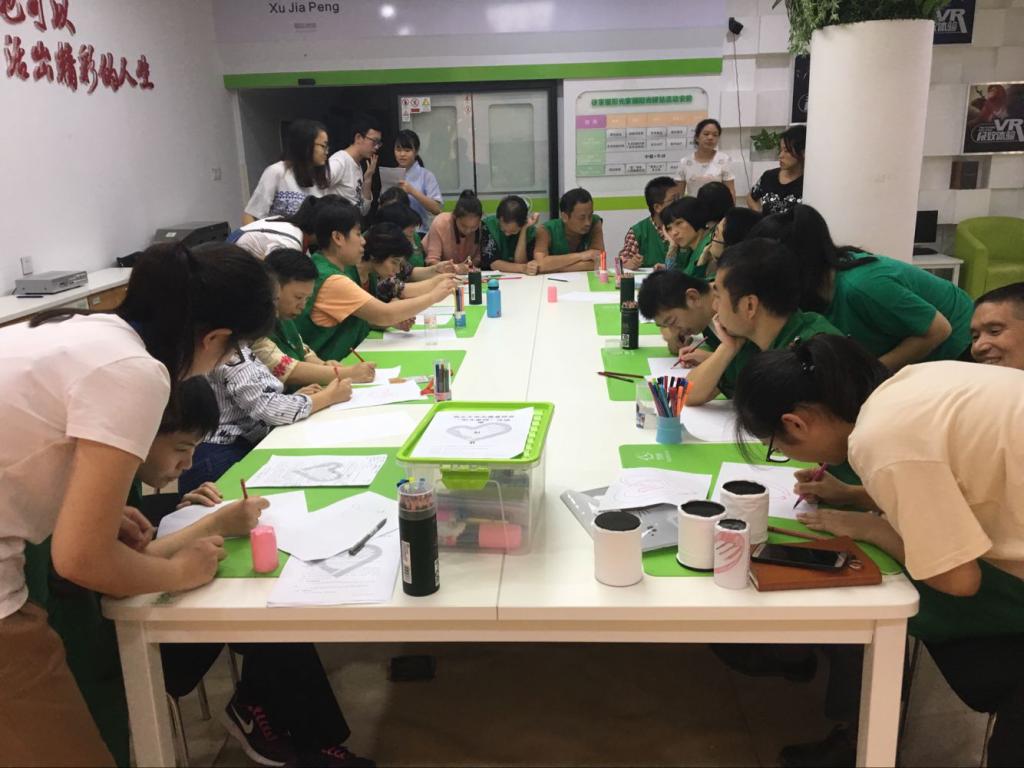 志愿者们到达“阳光家园”之后,首先与“阳光家园”的社工们进行了简单交流和衔接工作。之后,志愿者们正式开始了志愿服务活动。志愿者们与服务对象进行了破冰交流,随后与他们进行了一些简单的游戏,“击鼓传花”、“数字炸弹”、“逢七拍肩膀”等。现场气氛十分热烈。最后,志愿者吕苗带领大家绘制暖阳支援服务队图标,服务对象展示了极高的配合度,活动圆满结束。
