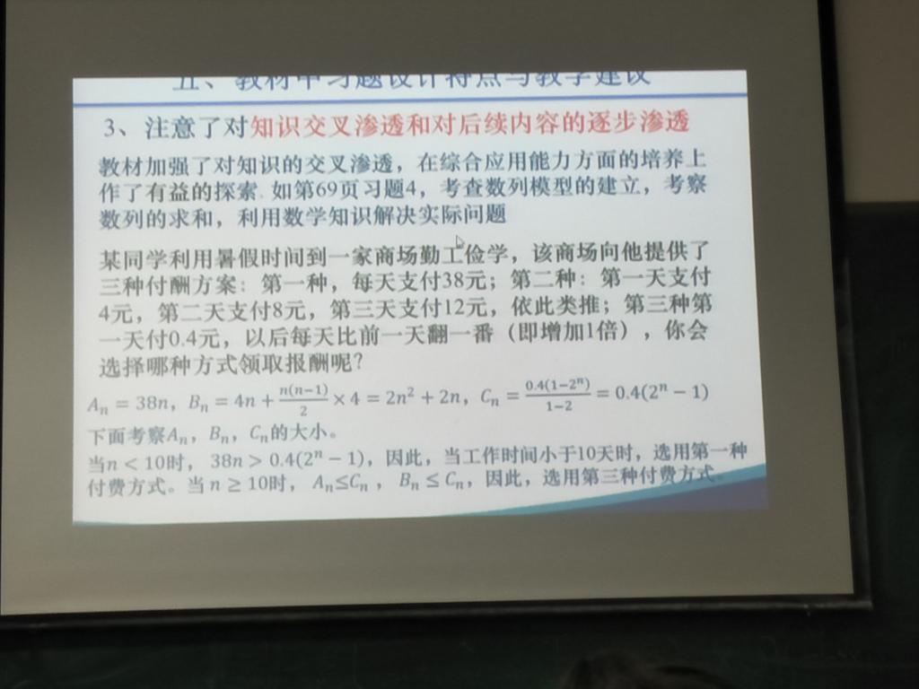 接下来,她就湖北省使用最广泛的人教A版教材中的伴随性问题进行了举例分析并给出了教学建议。她认为,“思考”型知识栏目往往起导学诱思、知识拓展等作用,可以让员工加深对所涉及到的核心内容的外延和内涵的认识。而“探究”型栏目则是对所学知识涉及到的数学解题方法和思路进行分析、对比与总结的基础上作出的进一步的阐述,它有助于发挥学习者把所学的知识从点到面上进行辐射和推广。一个优秀的教师应该对教材中的“伴随性问题”在教学中加以充分利用,只有师生之间的密切合作和协作探索,才能更大限度地发挥教材相关栏目的作用。杨老师还谈到了教材中数学史材料的呈现和习题设计特点并给出了与其相关的教学建议。