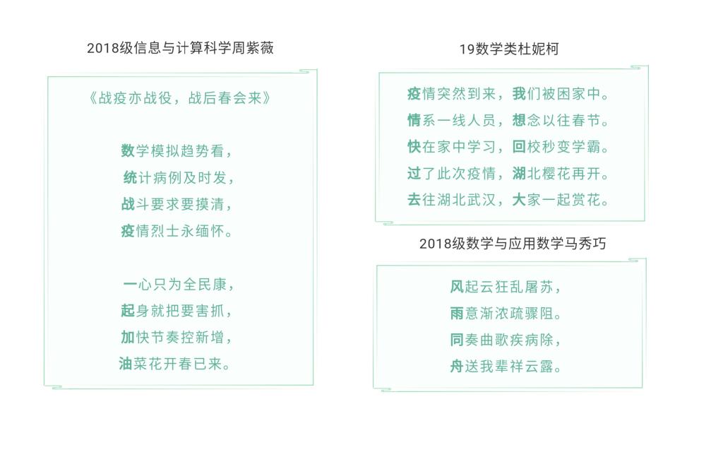 为了表达对所有抗疫人的感激之情以及对这场战役必胜的决心,同时将我国优秀的传统文化传承下去,永利集团304官网特于2020年3月9日举办了为期10天的“诗藏我心”藏头诗比赛。