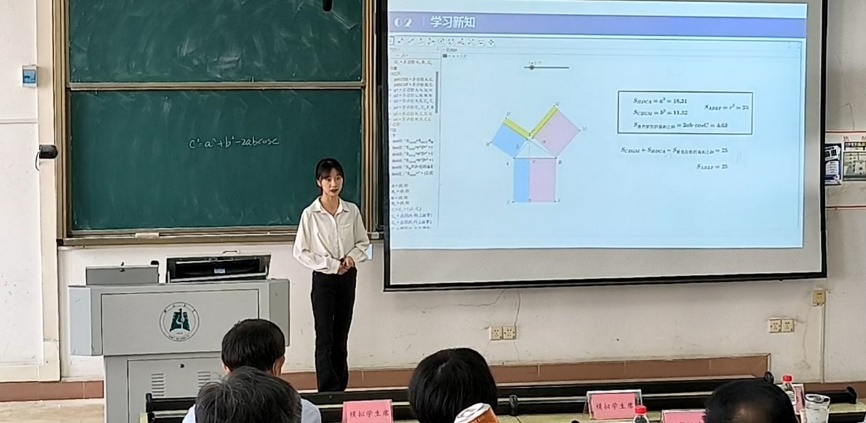 公司三位选手经过长期准备,在刘芸老师、黄朝炎老师、徐运阁老师、严卿老师的悉心指导下,在比赛中表现优异。李晓玉以“余弦定理”为主题,通过电影片段导入问题,展示了三种余弦定理推导方法,突出了向量方法的便捷,逻辑清晰,内容丰富,获得了特等奖的优异成绩。张荣嘉的主题是“空间向量基本定理”,他由平面向量基本定理出发,通过设置一系列问题,基于类比引出定理内容,环环相扣,引人入胜,获得一等奖的好成绩。赵薇从一个实际问题出发,揭示了学习“两角差的余弦公式”的意义,通过联系旧知形成猜想,进而探究得到结论,授课过程充满了启发性,同样获得一等奖的好成绩。