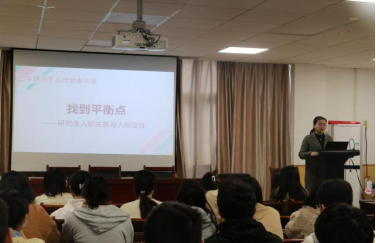 张老师以“找到平衡点,研究生人际关系与人际交往”为主题,围绕“什么是人际关系”“如何拥有好的人际关系”等问题展开讲解,通过人际剥夺实验说明了人不能生活在没有沟通的环境中,突出了人际关系的重要性以及生活中应该如何进行人际交往。