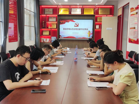 (文/图 曹劝)9月6日上午,永利集团304官网在党员活动室召开新学期第一次党支部书记例会暨党支部书记党务知识培训会。公司党委书记周霞、党委副书记王文锋、党委秘书吴玉莲及各师生党支部书记参加会议。