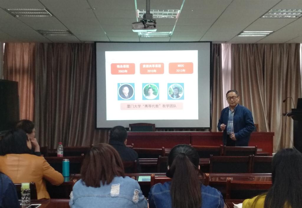 林教授跟我们分享了近20年来厦门大学《高等代数》国家级精品课程建设心得,从2003年的精品课程、到2010的资源共享课程、再到2013年起的慕课。从网站构建以及系列研讨会的开展两个方面,详细地介绍了他们团队在精品课程的建设中所作出的努力以及收获的成果。