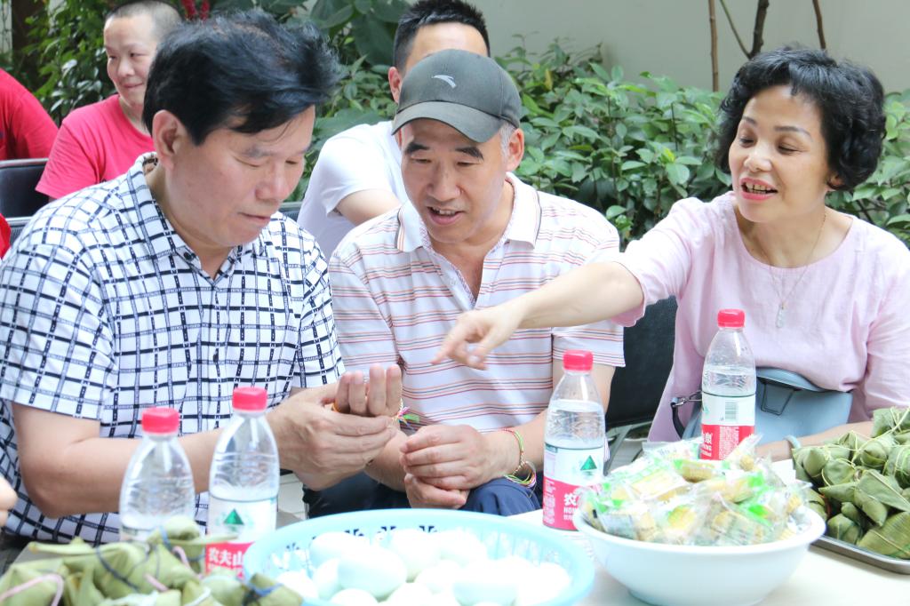 本次活动由暖阳志愿服务队与华中农业大学红杜鹃爱心社共同举办,在经过当面核对策划内容与再一次确定人员安排后,活动便正式开始了。首先,由公司团委书记周杰与社区社工刘溪娟讲话,预祝本次活动举办成功并对未来双方在志愿方面长期合作作出展望。然后,由暖阳志愿服务队汪悠然与红杜鹃爱心社章明共同主持,通过中国三大传统节日引出端午节。再由不同志愿介绍端午节相关知识与习俗,服务对象们在屈原、包粽子、划龙舟、系五色神、挂钟馗像等讲解时异常活跃,纷纷举手展示自己已经了解的知识,认真聆听新的知识,在讲解过后的问答环节都对答如流。紧接着就是最有意思的包粽子环节了,在院领导老师带领下,志愿者们和服务对象们一同学习包粽子,从开始的速度慢,粽子馅容易漏出来,到后来的速度又快形状又好看,大家脸上纷纷露出喜悦自豪的笑容。最后,活动用端午节虫儿飞等小游戏结尾,大家围成一个圈,一边用音响放着音乐,一边做着游戏,气氛温馨融洽。