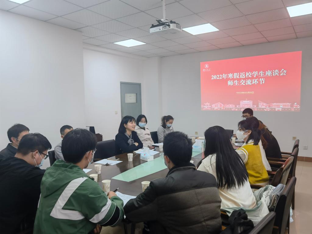 为推动“一线员工工作法”走深走实,加强师生之间的联系与交流,进一步了解员工思想动态、交流假期见闻和感受,更有针对性地做好新学期员工思想政治教育工作,永利集团304官网于2022年3月9日在205会议室召开寒假返校员工交流座谈会。公司党委副书记何肖、信息与计算科学系主任彭江涛老师、数学与应用数学系主任廖军老师、应用统计系主任刘展老师、教学办老师张凌、学工办老师陈慧以及员工代表等参加会议。