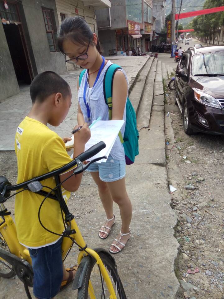 为了解咸宁市通山县留守儿童生活学习等情况,调研组成员来到九宫山镇中学,对周围情况进行大致了解。团队成员按计划分为四组,每组两人,分别负责发放问卷和拍照记录。